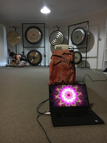 In 2017 David collaborated with Leith James, Sound Practitioner with the British Academy of Sound and founder of Brisbane based Gong Sound Meditation. Together they presented a visual art and sound experience using Leith's full 6 Gong setup and other transformative sound instruments. At the same time David's images and animations were projected onto a wall in front the audience. The end result was a tapestry of meditative visuals fused with the healing frequencies of gongs.